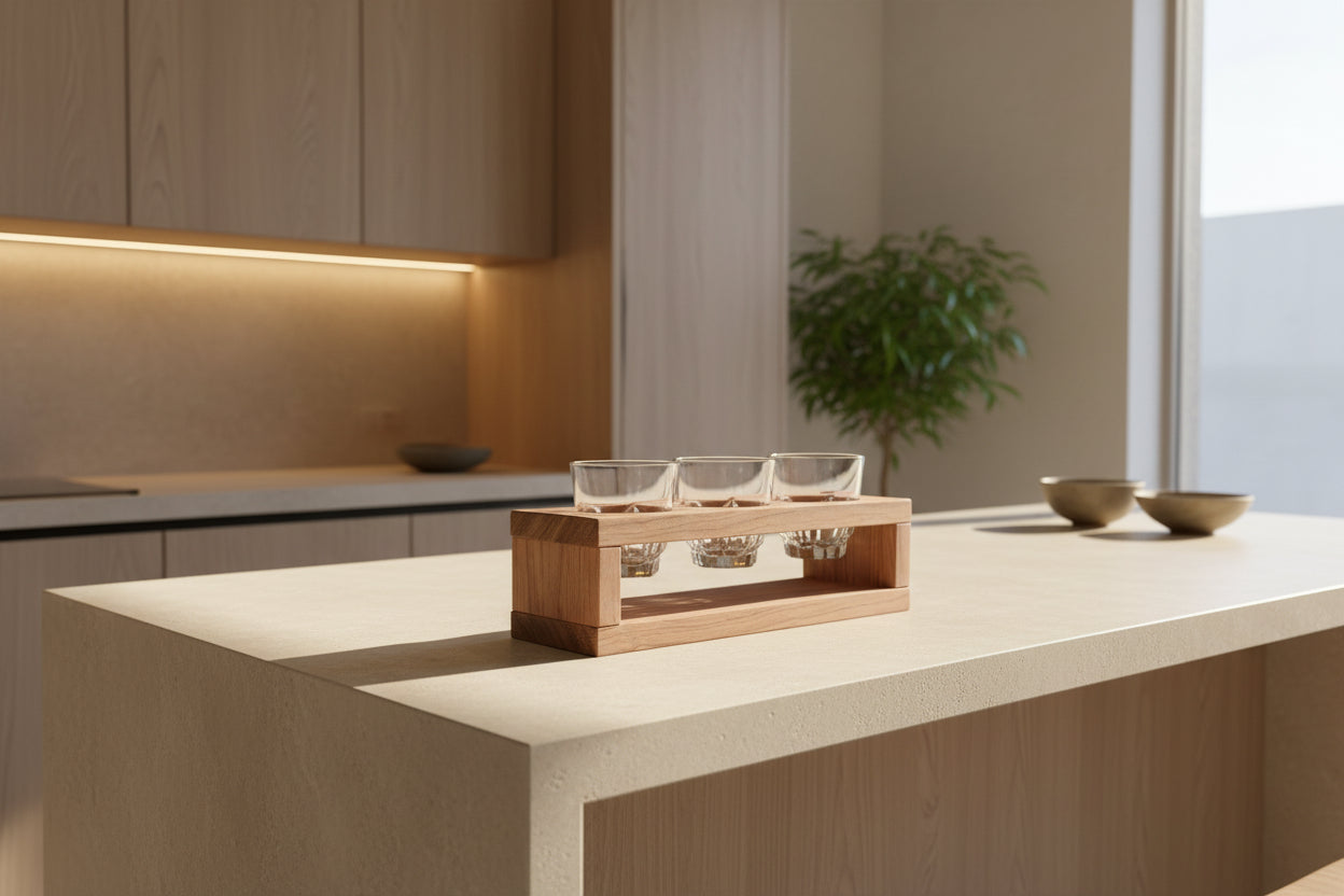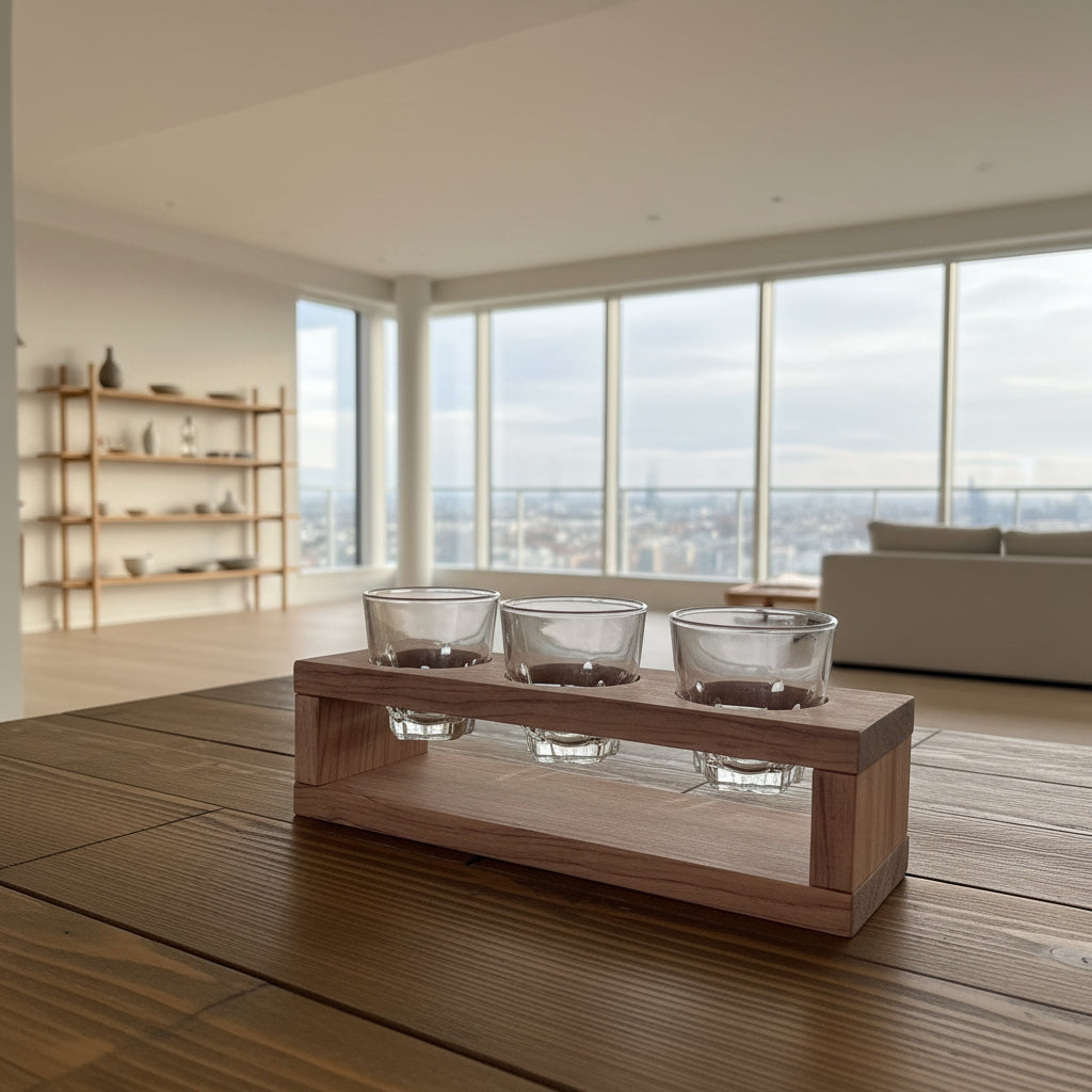 古材を使用した卓上に使えるおちょこ置き。