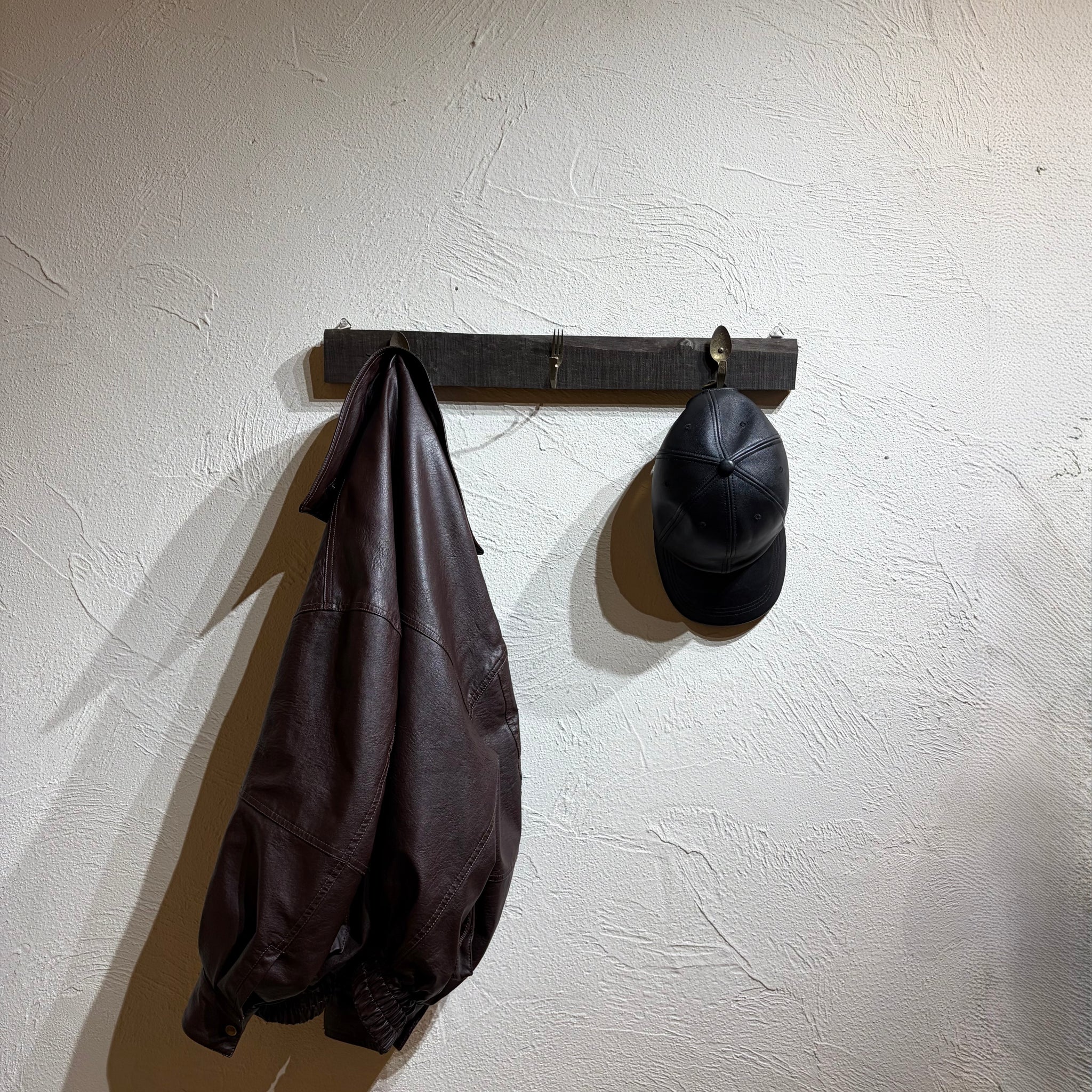 古材と一緒になることで更に奥ゆかしさとクラシックな雰囲気。近くでよく見るとフォークとスプーンというワンポイントおしゃれインテリアに。