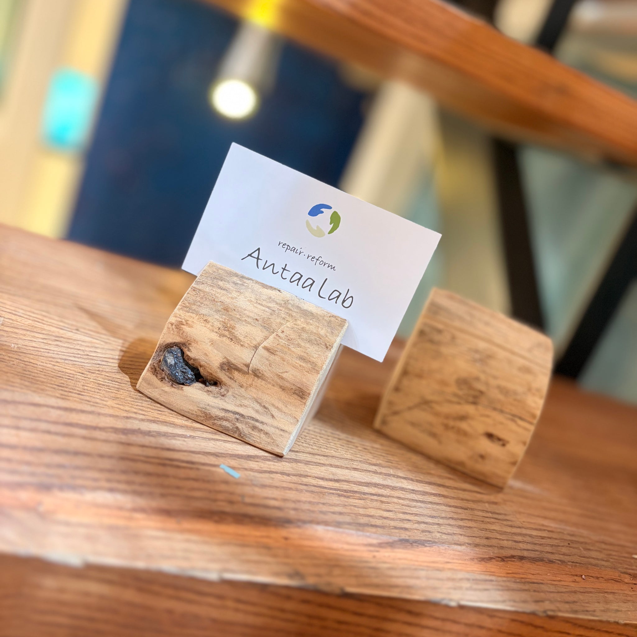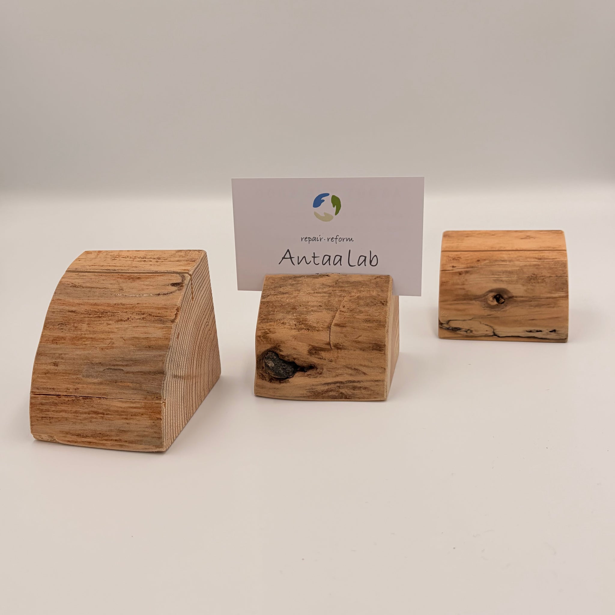 古材を使用した天然のカードホルダー。