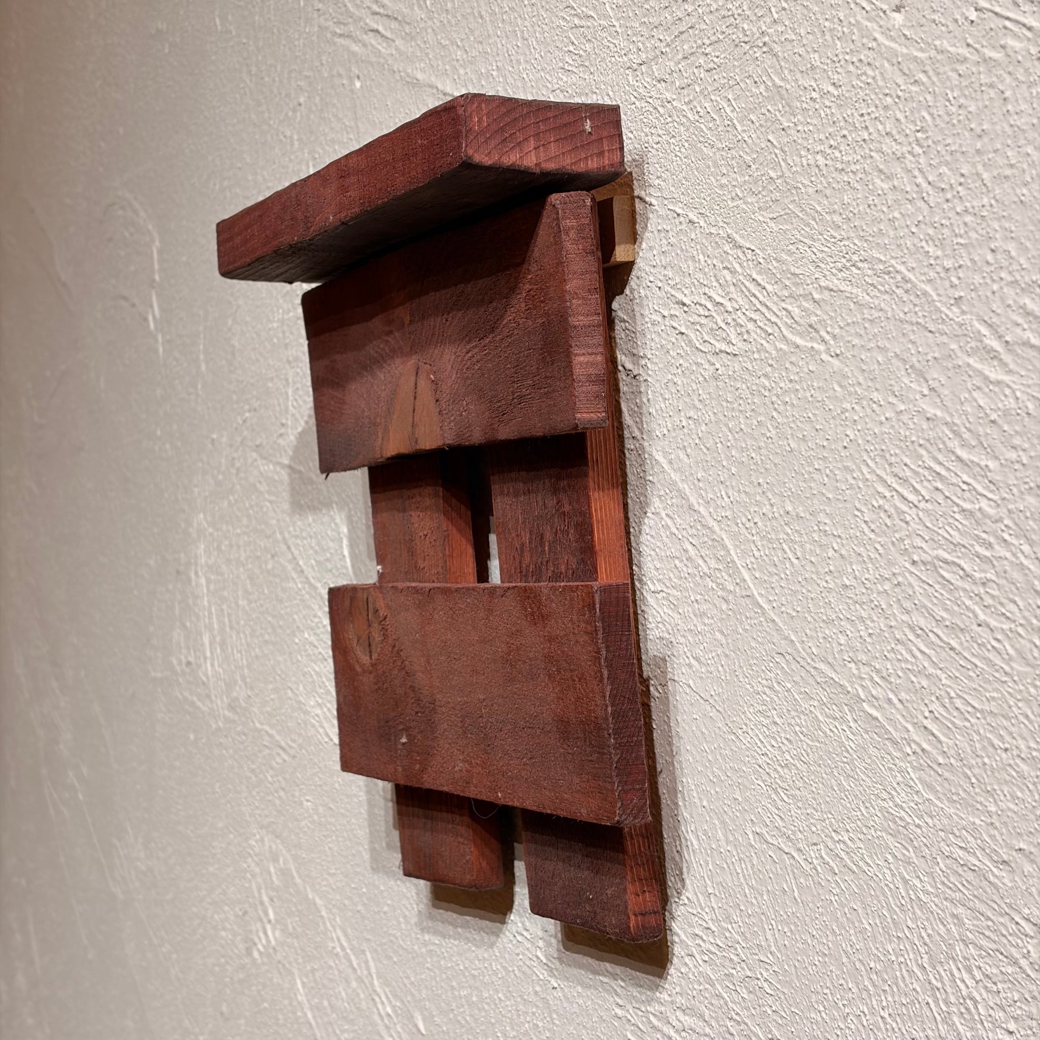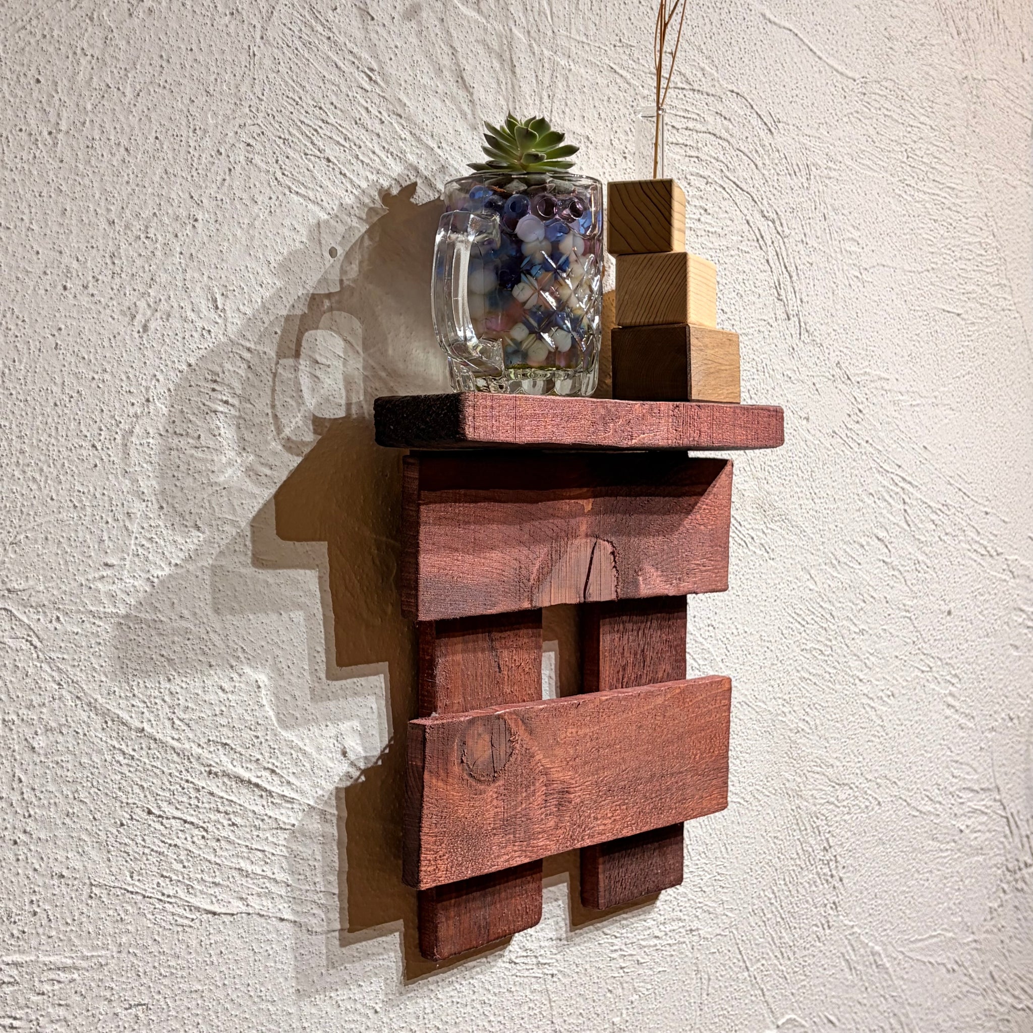 そのブビンガの古材を大胆にもディスプレイ用の壁掛けへ。